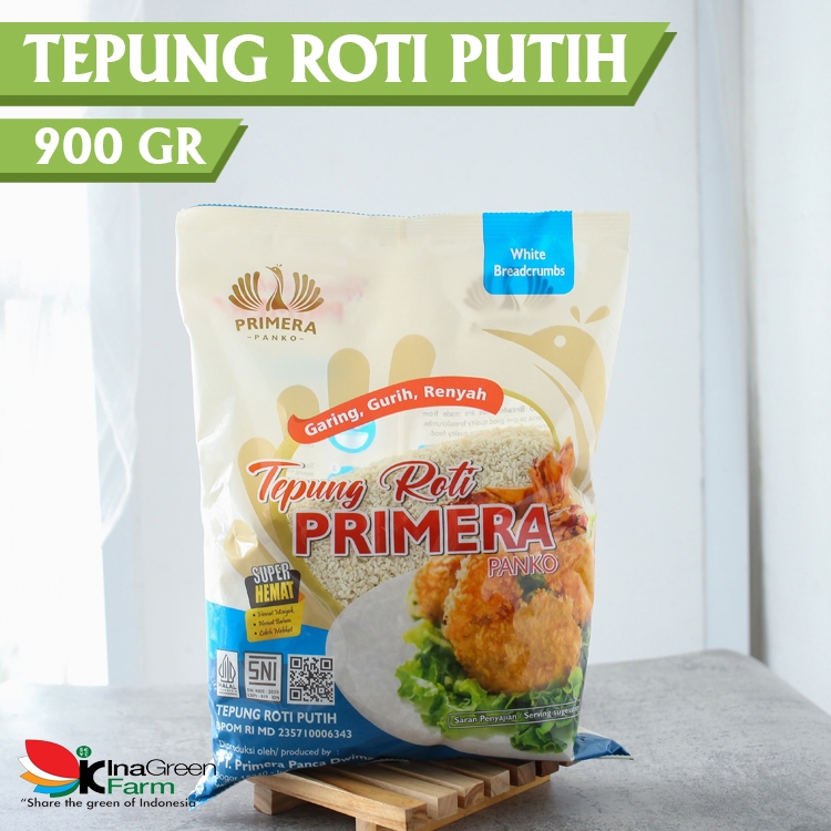 Tepung roti putih Primera merupakan produk tepung roti premium yang berlabel Halal MUI. Tepung roti ini memiliki butiran yang kasar dan lebih kering sehingga tidak mudah menyerap minyak.