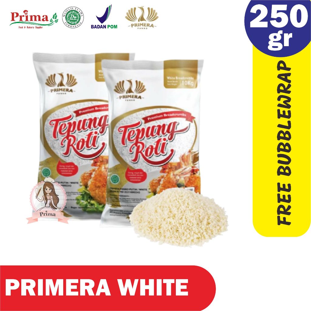 * Primera bread crumb white tersedia 250 gr, dan 500 gr.