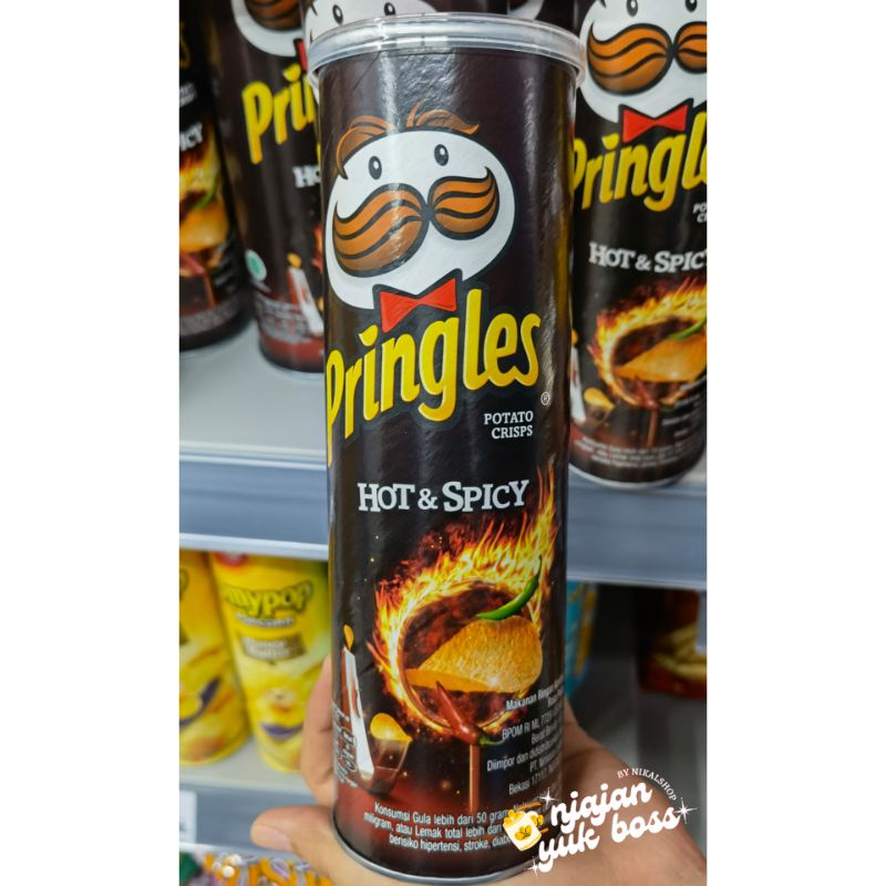 Awalnya dipasarkan sebagai ""Pringles bermodel Potato Chips"" Pringles adalah merek kentang dan berbasis gandum makanan ringan stackable chip yang sekarang dimiliki oleh Kelloggs dan dijual di lebih dari 140 negara. Pringles adalah merek makanan ringan yang paling populer keempat setelah Lay, Doritos dan Cheetos di 2012. Komposisi: Kentang minyak nabati tepung berasam pati gandum air maltodextrin pengemulsi nabati garam dekstrosa dan pengatur keasaman asam sitrat.