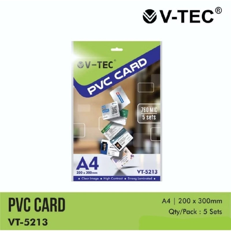 Printable ID Card / Kertas PVC V-TEC VT-5213 A4 760 mic 5 Set