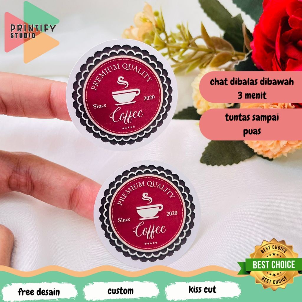 Cetak Print Stiker Label Minuman Coffee Sticker Tema Coffe Bulat Chromo Murah Free Desain Kopi