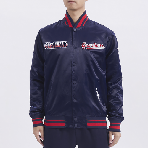 Pro Standard Mens Pro Standard Clev. Guardians Turn It Up M Rib Satin Jacket - Mens Navy/Red Size M