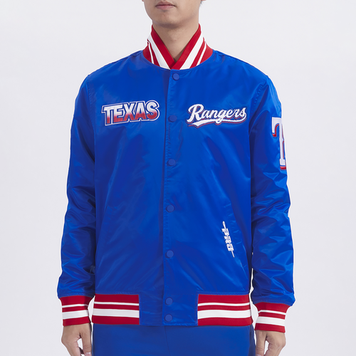 Pro Standard Mens Pro Standard Texas Rangers Turn It Up M Rib Satin Jacket - Mens Blue/Red Size L