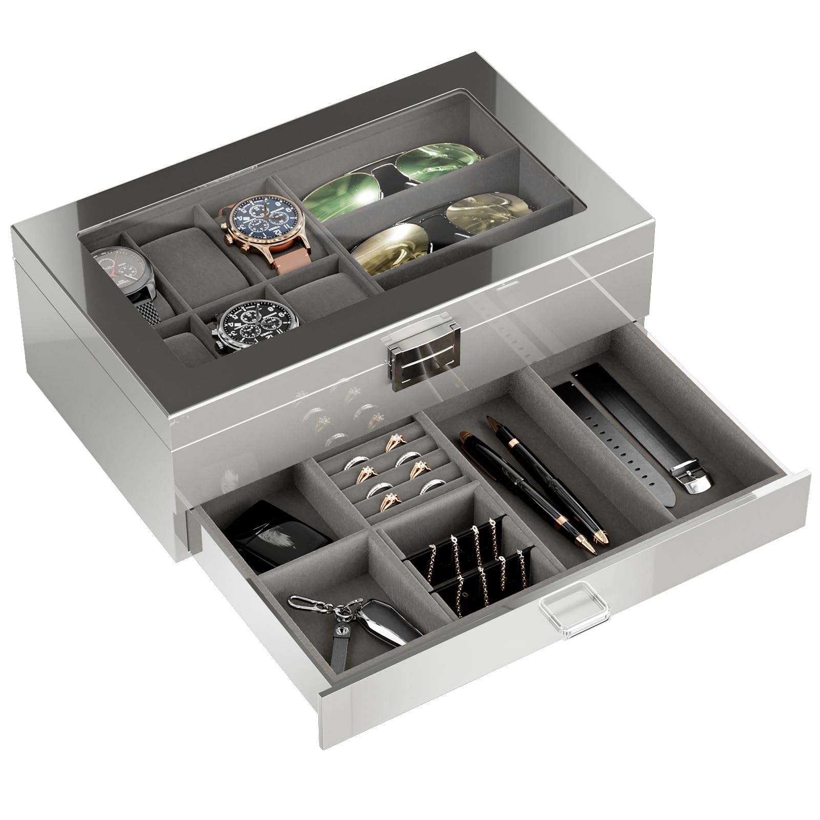 ProCase Футляр для часов на 6 часов для дисплея из пиано-стекла, подарочные часы, деревянный, 2-ярусный, коробка, мужской, отделка, верх, футляр, роскошный, (Серый) серый