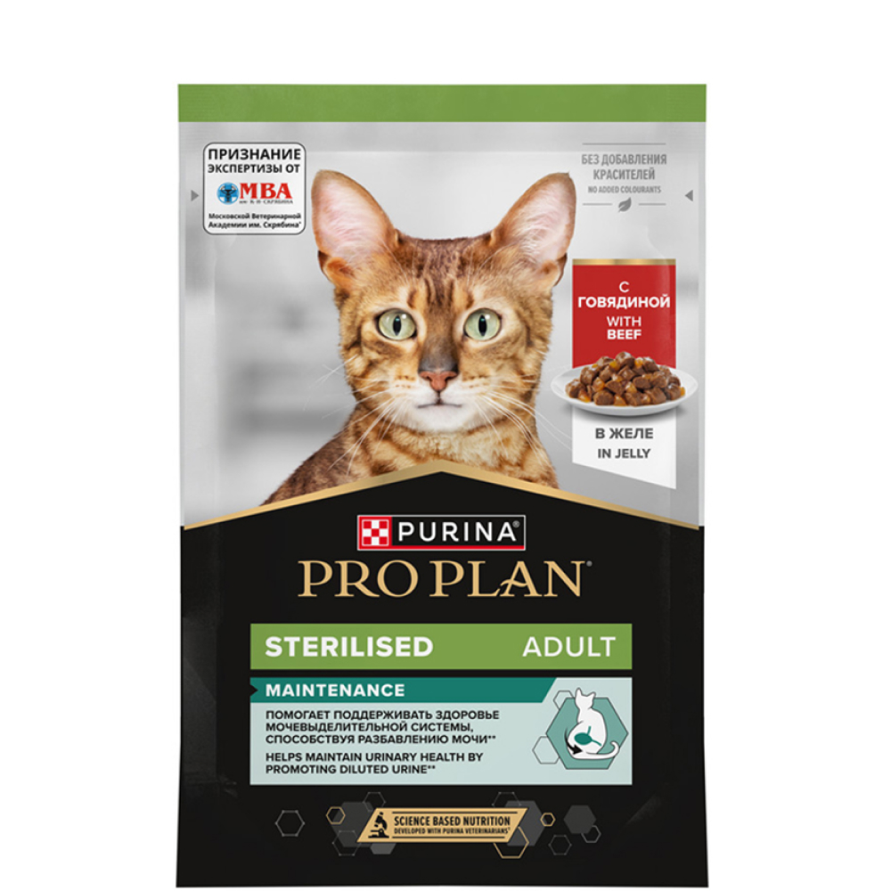 ProPlan Sterilised MAINTENANCE Влажный корм (пауч) для взрослых стерилизованных кошек, с говядиной в желе, 85 гр.