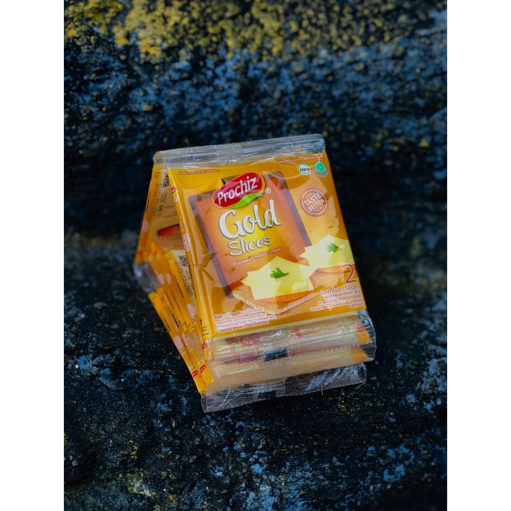 Prochiz Gold 2 Slice , merupakan Keju lembaran yang cocok untuk kebab, sandwich, burger dan hotdog. Rasa lebih asin dan gurih.