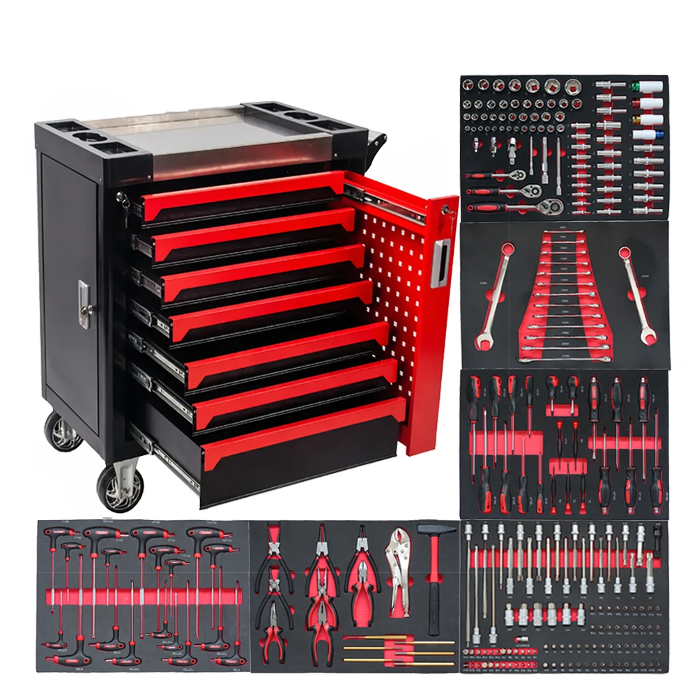 Professional 258 Pcs Tool Set 7 Drawers Heavy Metal Garage Chest Storage For Mechanic Users