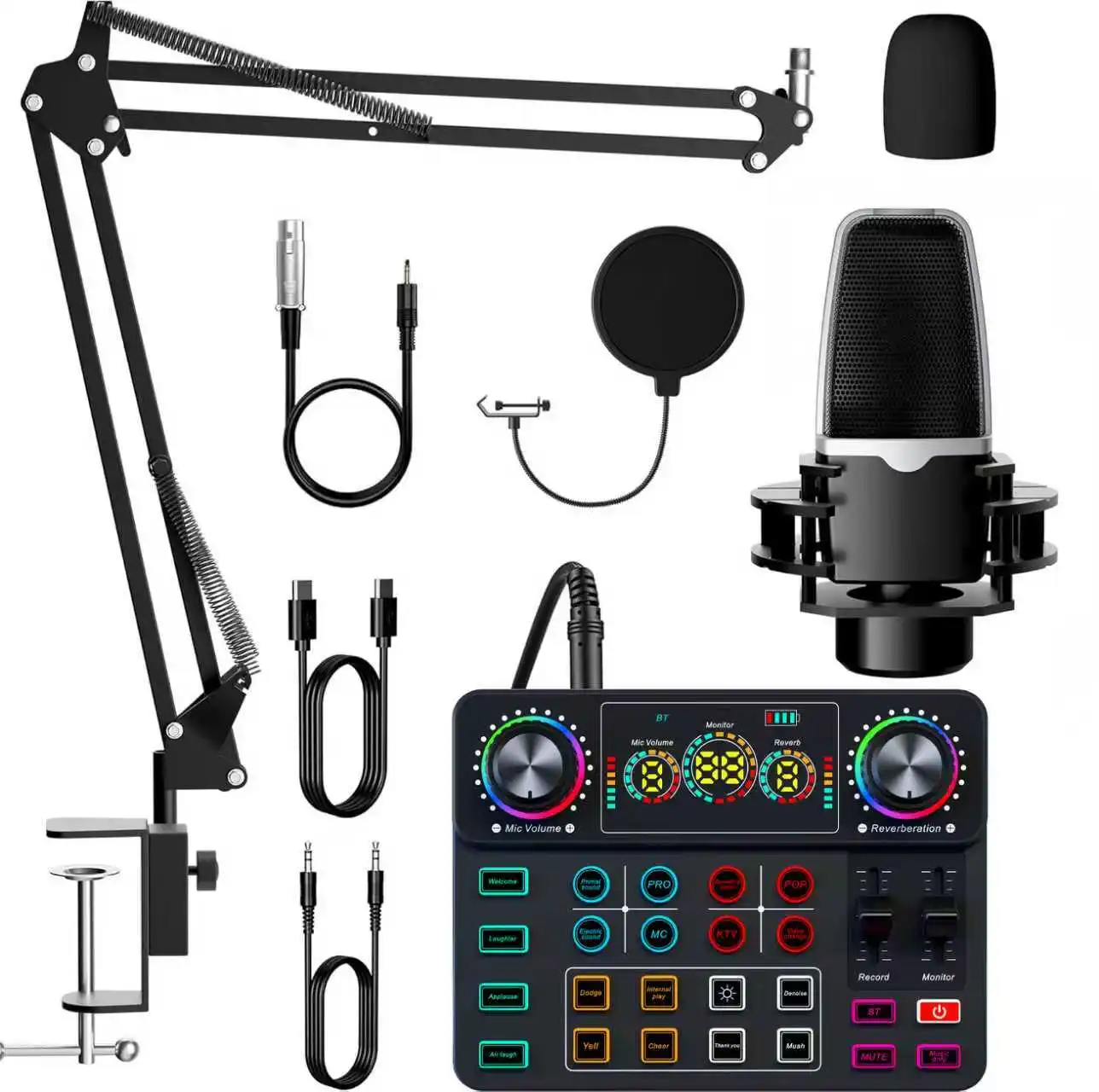Professional Broadcasting Kit with Intelligent Audio Voice Sound Card and Microphone for Live Streaming Broadcasting