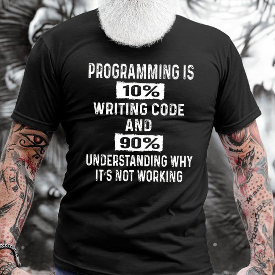 Programming Is 10% Waiting Code And 90% Understanding Why It's Not Working Men's Cotton Short Sleeve T-Shirt