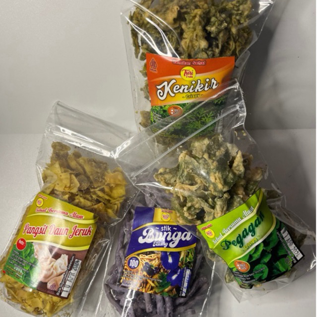 Promo 4pcs Keripik Kenikir,Pangsitjeruk,Stik bunga,pegagan Crispy gurih renyah