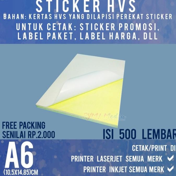 Promo 500 Lembar Stiker Hvs A6 / Kertas Sticker Doff Matte 1 Rim A6