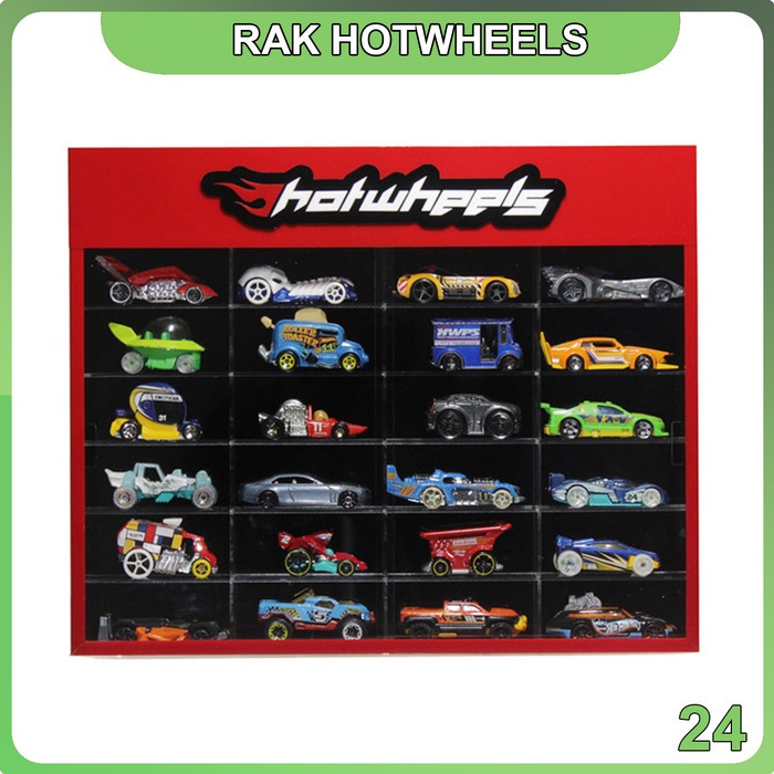 Promo Rak Rack Hotwheels 1:64 Isi 24 Header Slim Fit Edition - Merah Hitam