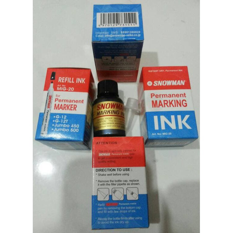 Refill Ink Snowman Permanent Marking / Isi Ulang Tinta Spidol Permanen Marker MIG-20