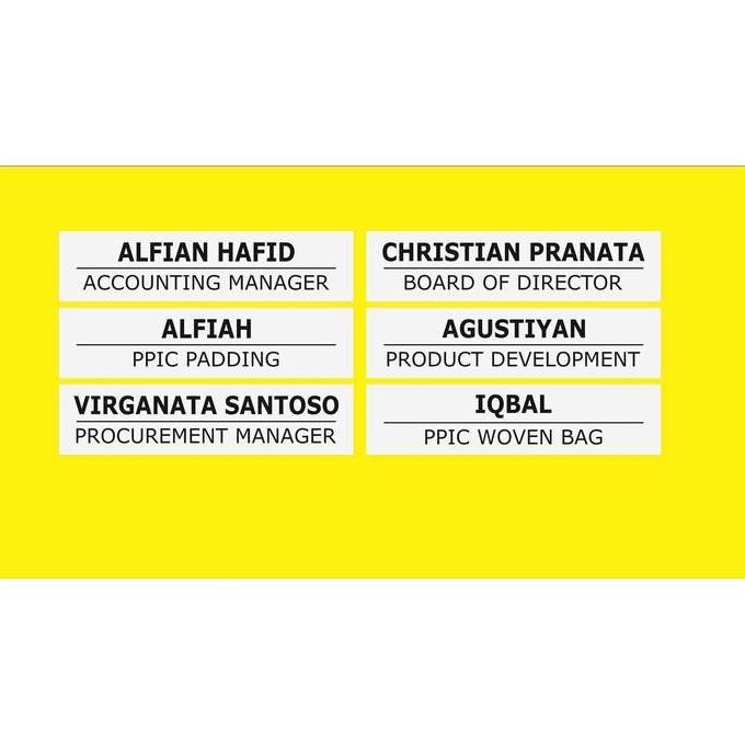 1. Sign Nama dan Jabatan. Ukuran 6x25 cm. 13 pcs.