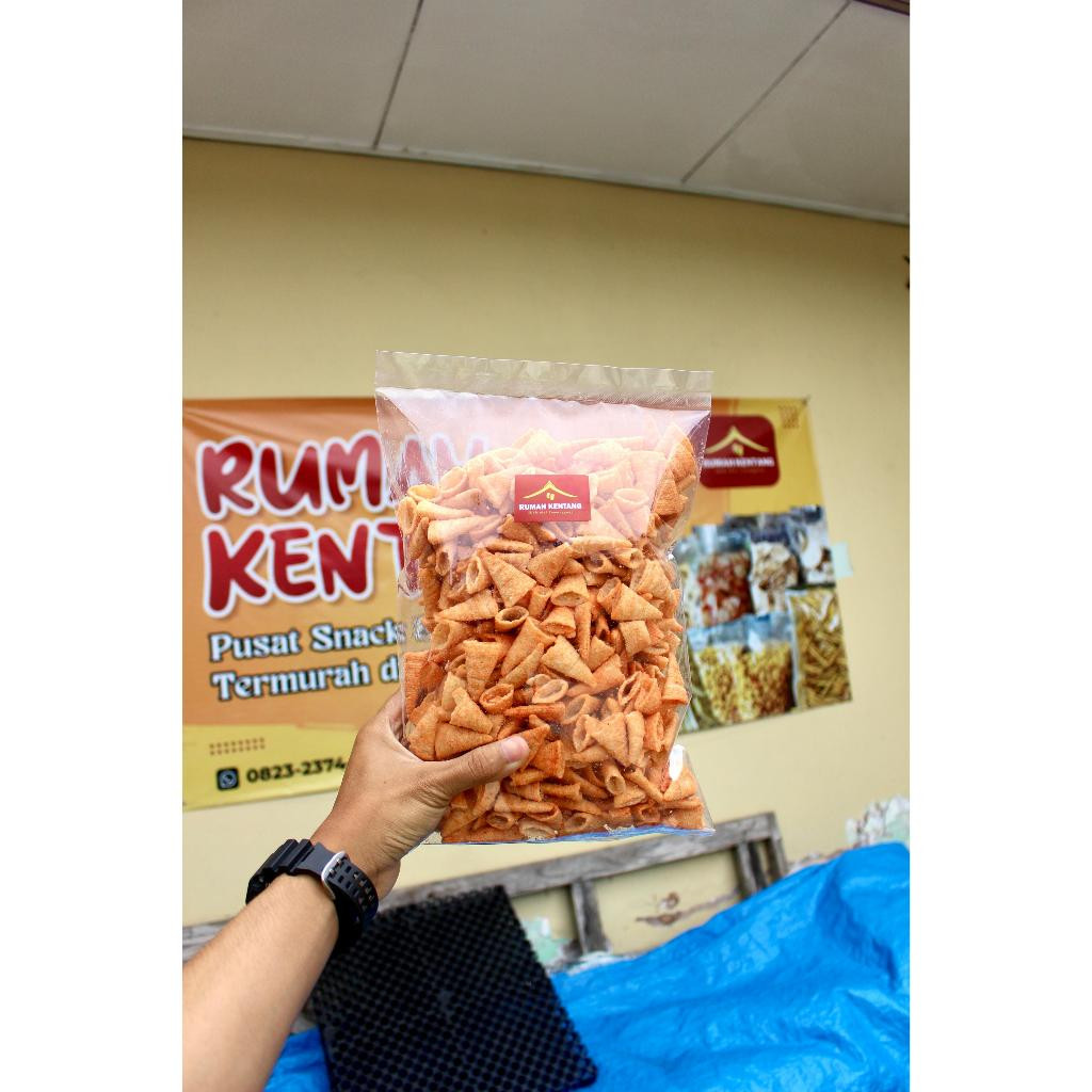 Hadir dengan bentuk yang lucu dan unik menyerupai terompet, Snack Terompet siap jadi camilan favorit keluarga! Terbuat dari bahan pilihan seperti tepung berkualitas dan bumbu spesial, snack ini punya rasa gurih yang khas dan tekstur super renyah di setiap gigitannya.