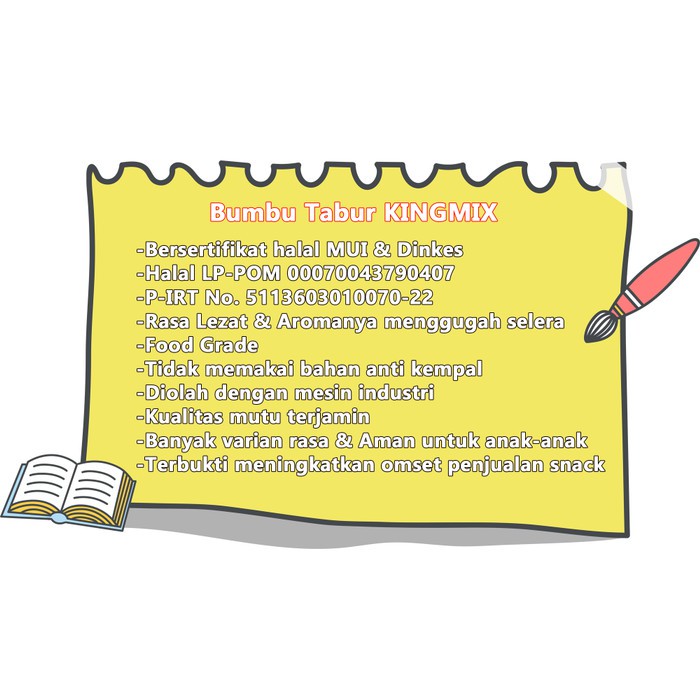 Kingmix terjaga kualitasnya dan aman dikonsumsi oleh anak-anak. banyak digunakan oleh industri/pabrik chiki,snack yang ada di mini market.