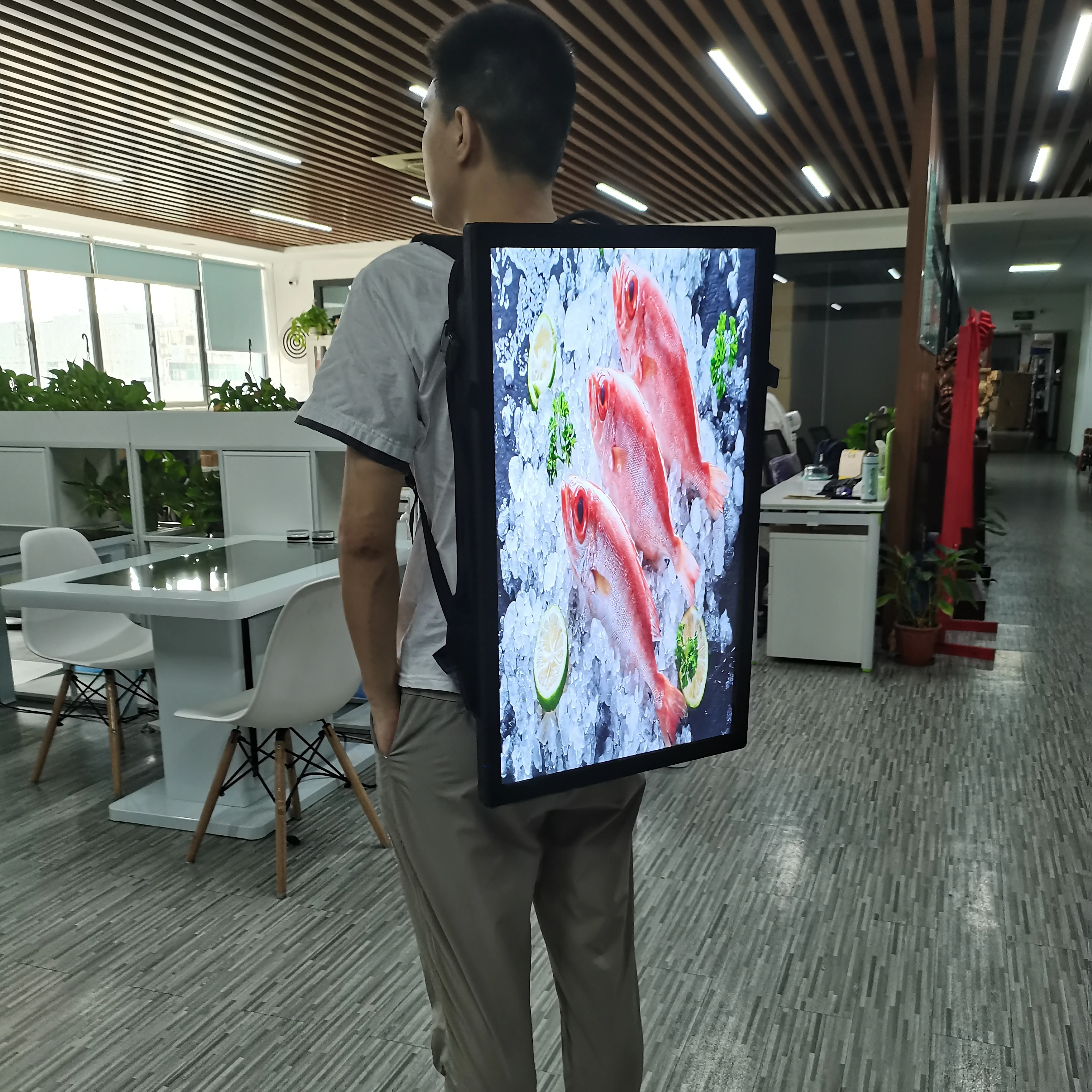 Promotion 27Inch Big Size High Definition LCD Screen Backpack Billboard Street Public Advertising Equipment App Control