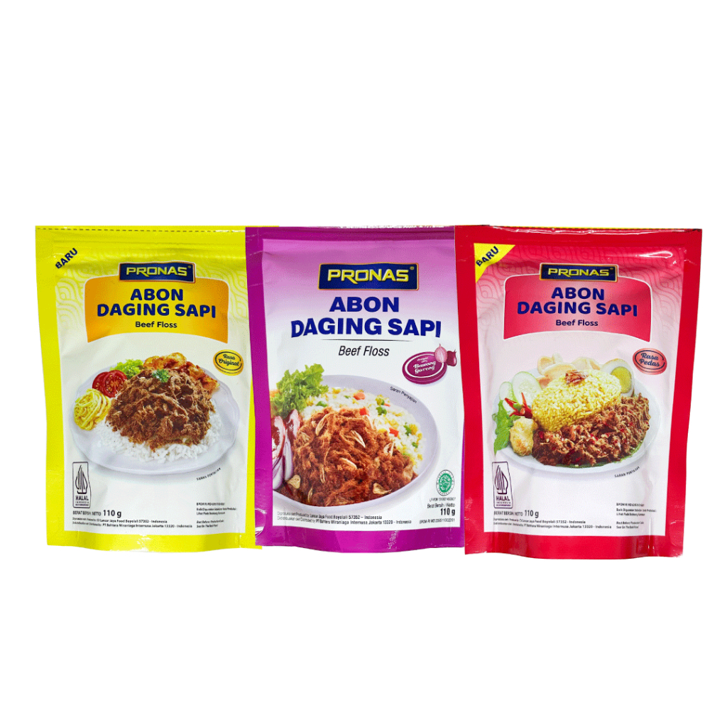 Abon daging sapi persembahan Pronas ini siap memberi cita rasa yang gurih dan nikmat untuk hampir semua hidangan favorit Anda, mulai dari nasi, roti, mie dan berbagai masakan lainnya.