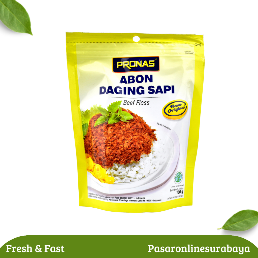 Pronas Abon Daging Sapi Rasa Original 100 Gram merupakan abon sapi terbuat dari daging sapi dengan bumbu rempah pilihan. Rasanya gurih, nikmat dan lezat.