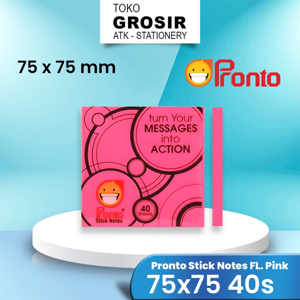Pronto Stick Notes Fluoro Pink 75x75mm 1pc / Sticky Notes Pink Neon 40 sheets