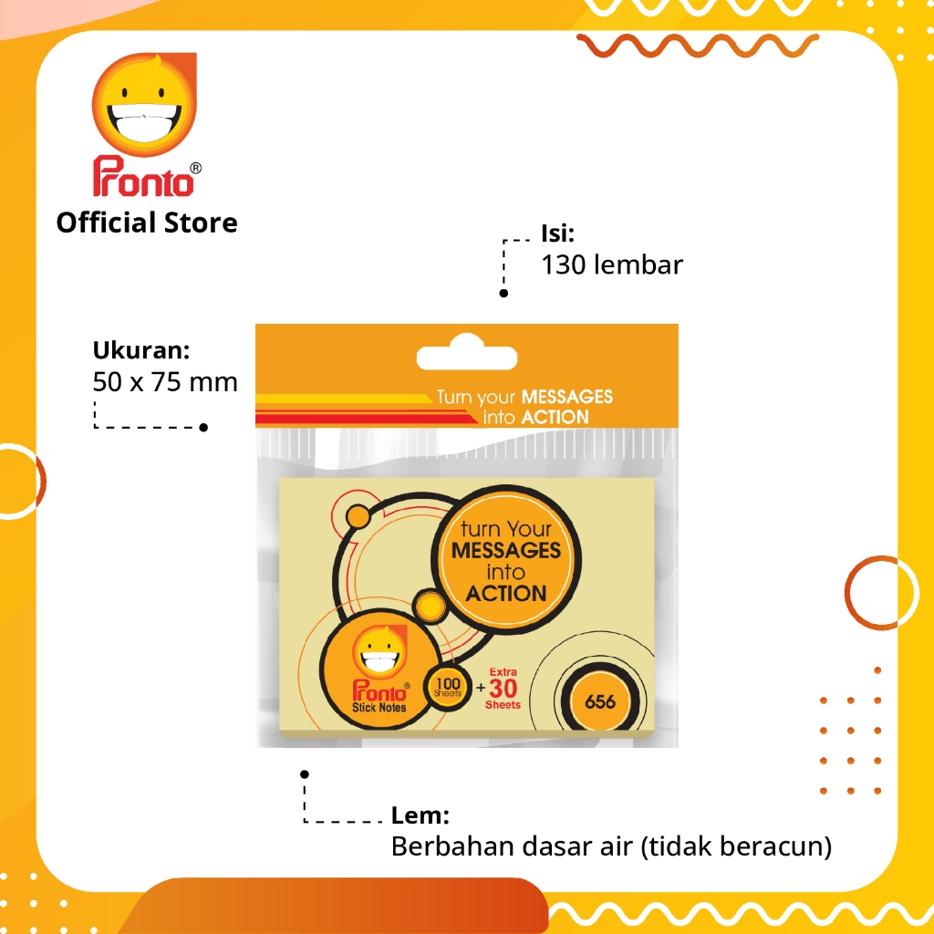 Pronto Sticknotes Standard Yellow 50 X 75 mm 130 sht PSN57130