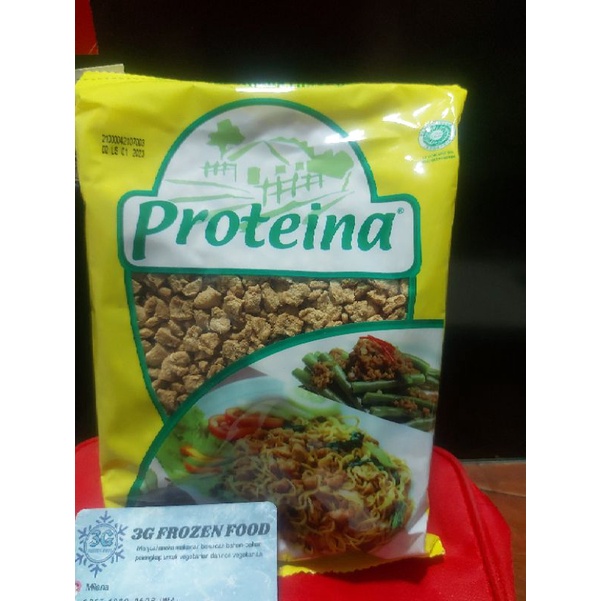 Proteina adalah protein nabati yang siap diolah untuk dijadikan aneka hidangan. Teksturnya terbentuk serupa dengan serat daging. Dari segi gizinya, daging dan Proteina olahan mempunyai kandungan protein yang setara namun Proteina tidak mengandung lemak serta kolestrol. Proteina bisa dijadikan altermatif sumber Protein yang lebih sehat, enak dan relatif lebih ekonomis. Proteina pilihan sehat untuk asupan protein keluarga.