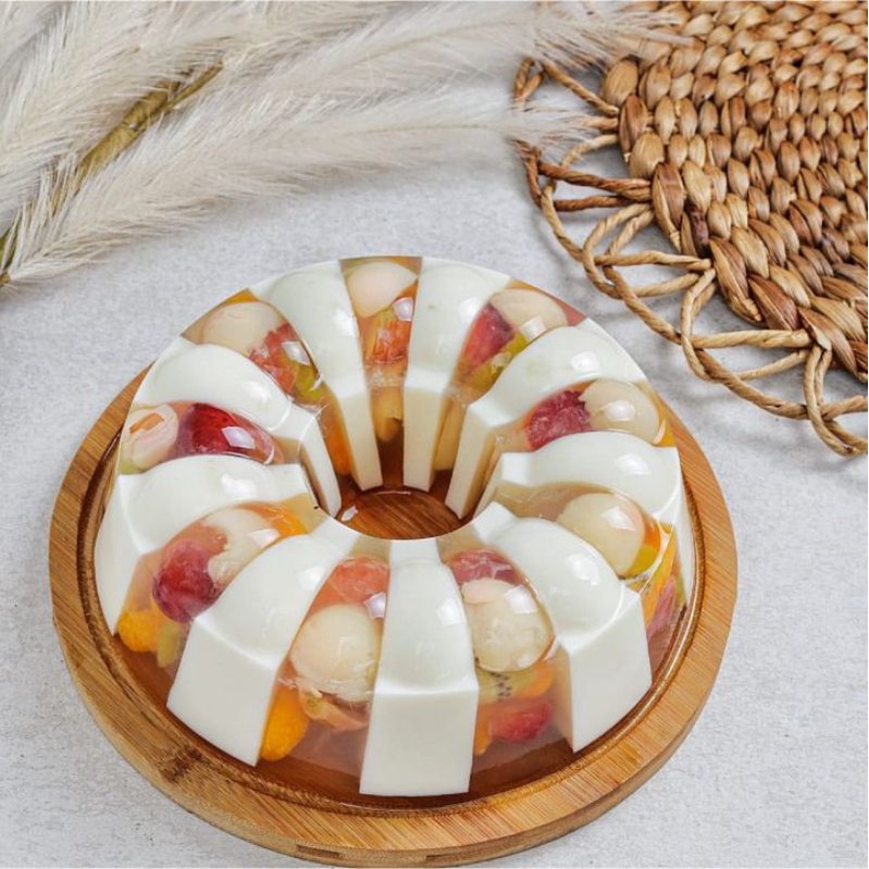 Pudding Susu di padukan dengan Puding Buah yang segar, cocok untuk cemilan bersama keluarga atau untuk kiriman hadiah untuk orang-orang terkasih.