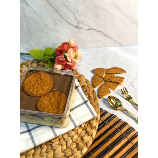 Perpaduan, pudding, remukan biskuit, saus keju creamy, coklat ganache dan vla vanilla. Semua Halal