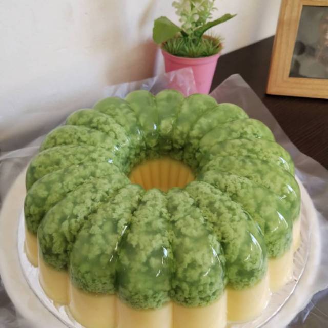 Perpaduan antara puding lumut dan puding jagung menjadi sensasi nikmat di cuaca panas