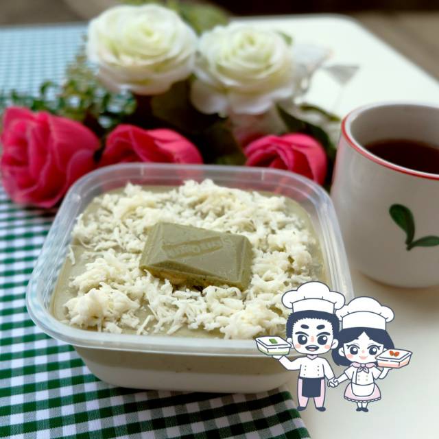 Pudding vanila ditambah dengan fla macha yang segar