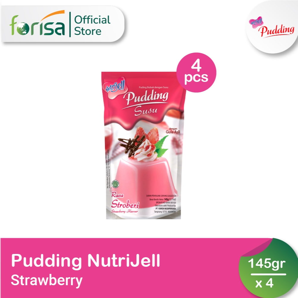 4 x Pudding Nutrijell Susu Rasa Strawberry 145 gr