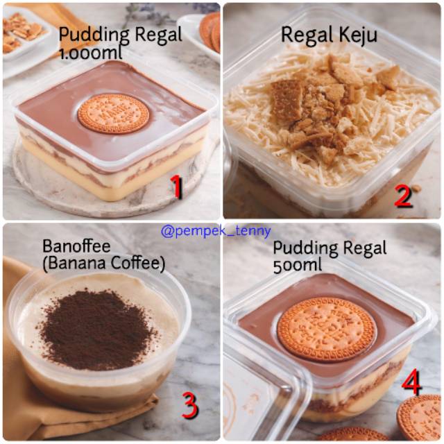 Sajian penggoda iman , kenyalnya pudding dipadu lembutnya cream ditambah dengan renyahnya biskuit regal , disajikan dingin - surga dunia euyyy!