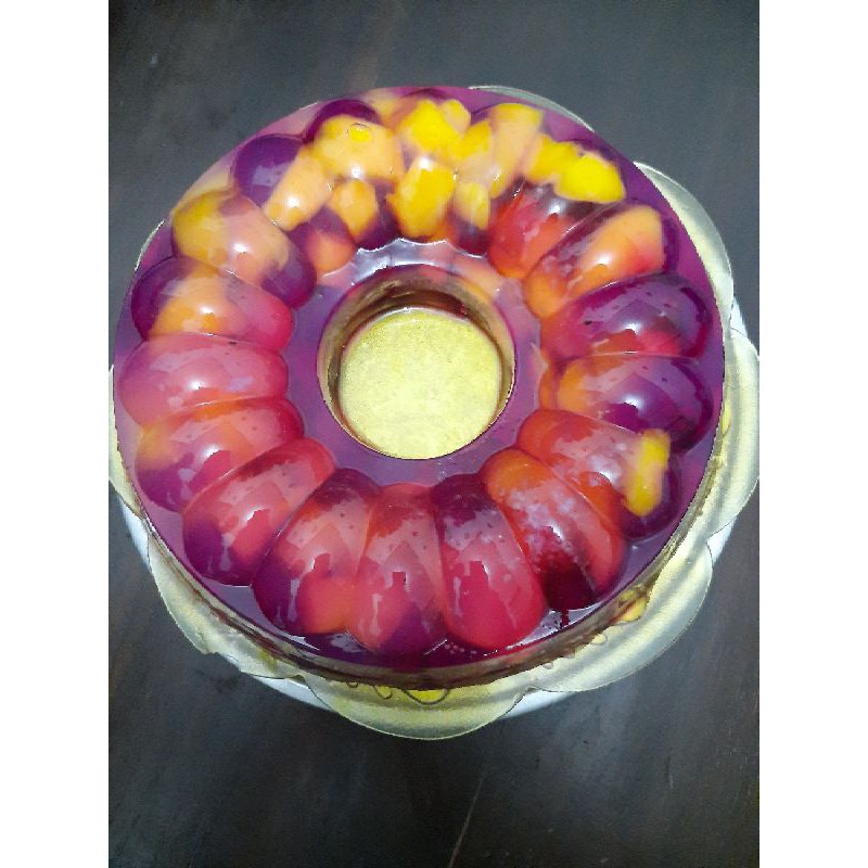 Pudding buah 2 macam buah mangga dan naga ukuran diameter 18 cm
