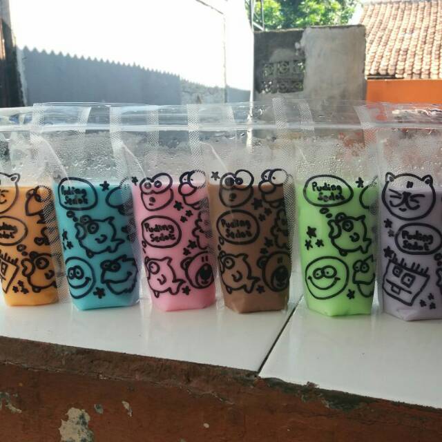 Puding Sedot kemasan standing pouch enak murah bersih dan halal.