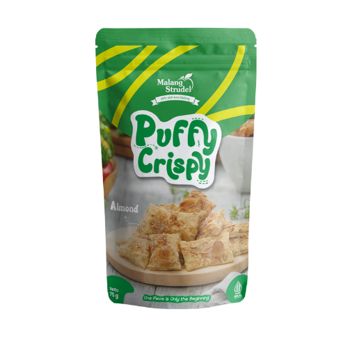 Kami dengan bangga mempersembahkan Puffy Crispy dari Malang Strudel, camilan yang wajib kamu coba! Dengan tekstur luar yang renyah dan lembut di dalam, setiap gigitan pasti bikin kamu ketagihan. Ditambah lagi, topping gula dan kacang almondnya membuatnya semakin nikmat!