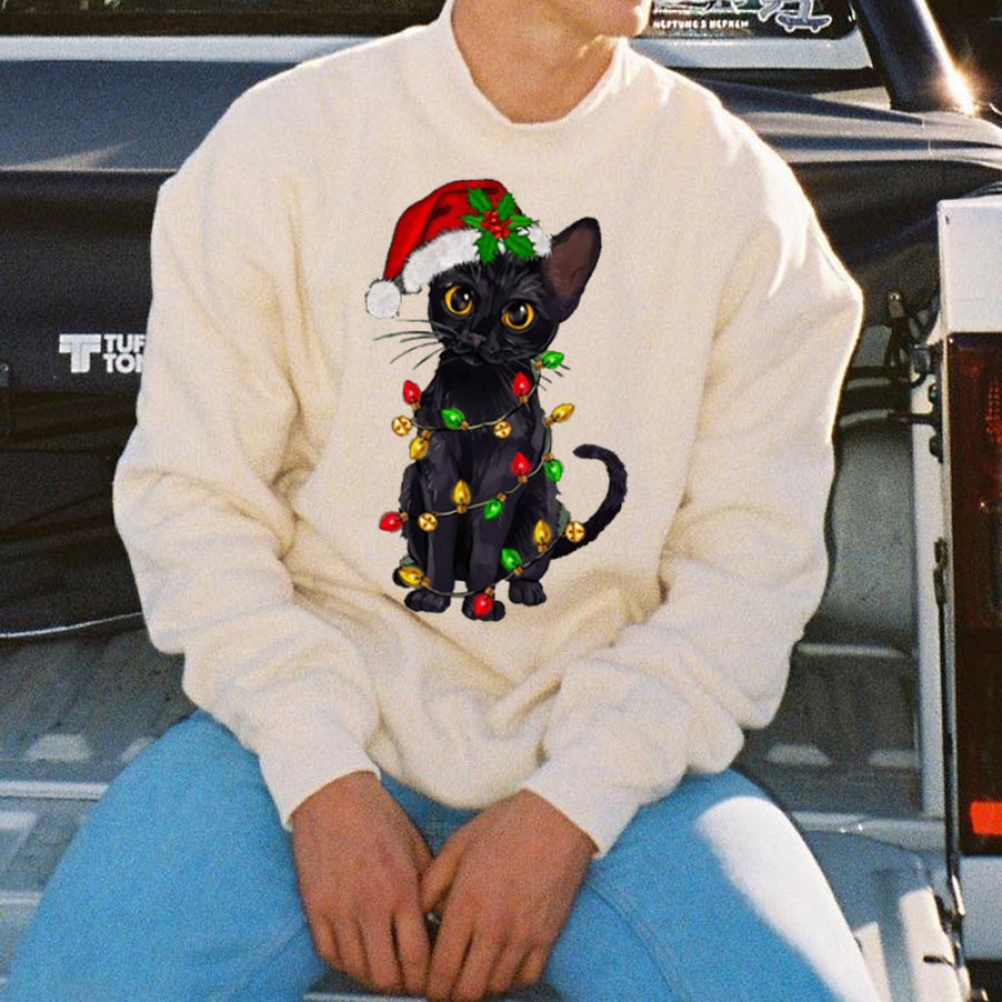 sweats à capuche et sweat-shirts,pull à col rond imprimé chat de noël