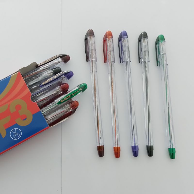 Pulpen Faster F3 merupakan pulpen berbahan plastik yang di desain ergonomic dengan handle yang nyaman di genggam atau dipakai. Ideal untuk melengkapi alat tulis anda
