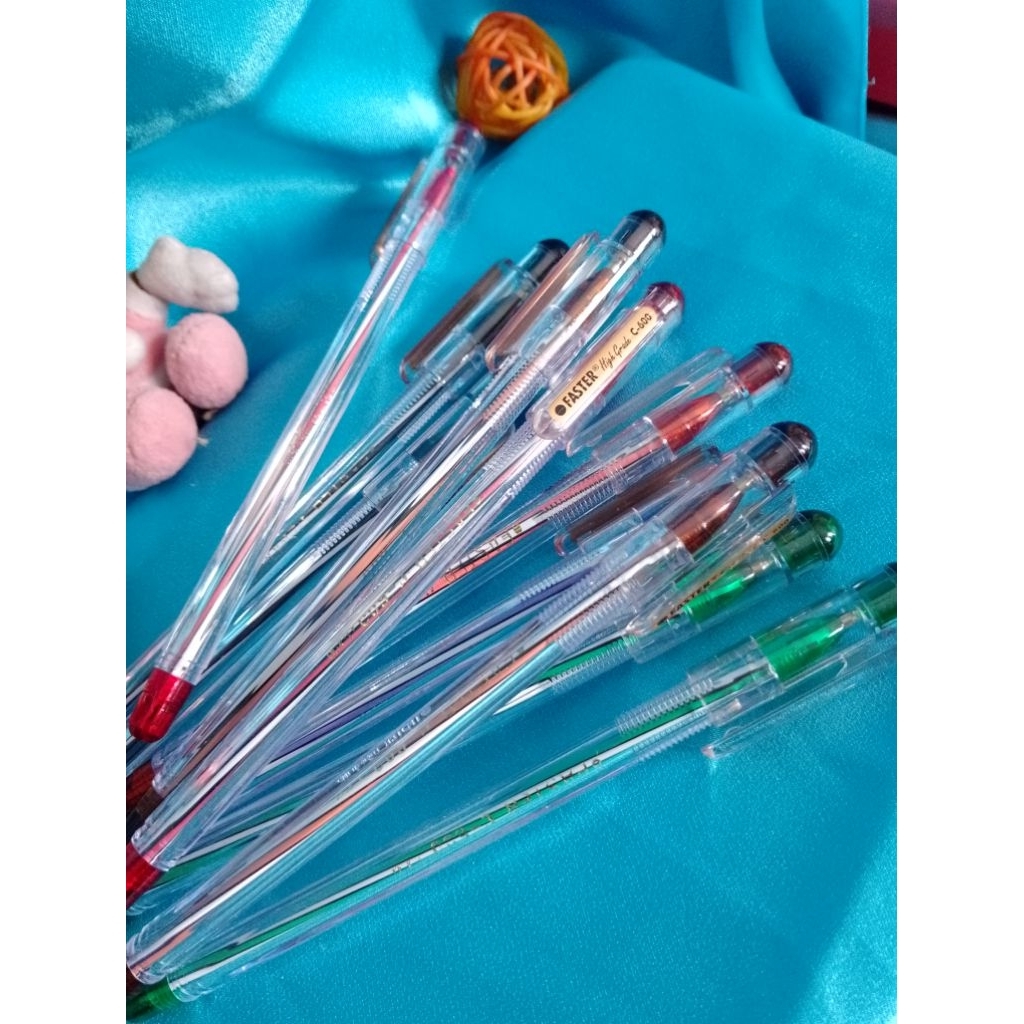 Pulpen Faster Hitam adalah alat tulis yang menggunakan tinta berwarna hitam dan memiliki berbagai model dengan karakteristik yang berbeda, Pulpen ini populer digunakan untuk berbagai keperluan, mulai dari menulis catatan di sekolah atau kantor hingga membuat sketsa dan karya seni.