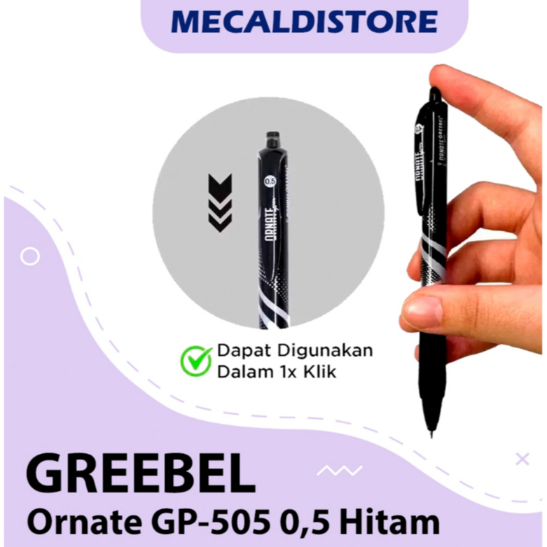 PULPEN GEL GREEBEL/ Gel Pen Ornate GP-505 0.5 Hitam (1PCS) /Gel Ballpoint Pena Gel