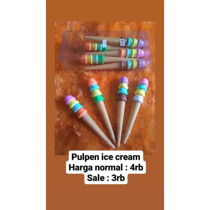 Pulpen dengan aksesoris ice cream. Dengan warna cerah yang menarik perhatian sehingga dapat membuat anak tertarik untuk belajar menulis. Alat untuk menulis sekaligus bermain bagi anak yang membuat aktifitas belajar anak menjadi seru dan tidak membosankan.