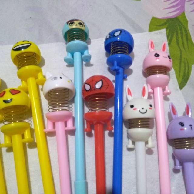 Pulpen karakter motif emoticon, hello kitty, LOL, spiderman, dan kelinci