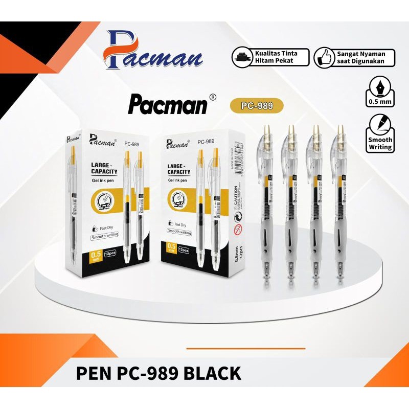 Pulpen Retractable 0.5mm PACMAN PC-989 (12pc)