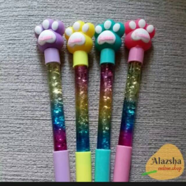 Pulpen gliter di hiasi dengan boneka yg beraneka ragam.supaya anak lebih giat belajar