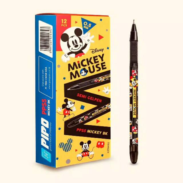 Pipo SG Tecno Tip PPS5 hot print Mickey mouse Set Ballpoint [12 pcs] adalah set ballpoint yang sangat diminati oleh sekolah dan perkantoran yang memiliki motif menarik dan beraneka warna yang bervariasi membuat Anda dapat memilih warna favorit Anda. Telah teruji memiliki kualitas terbaik, sangat lancar saat menulis, tidak bocor, dan juga tidak mengotori tangan Anda. Dilengkapi mata pena 0.5 mm dengan kualitas smooth, mudah digenggam, serta memiliki tinta yang lebih hitam dan solid. 1 lusin isi 12 pcs.