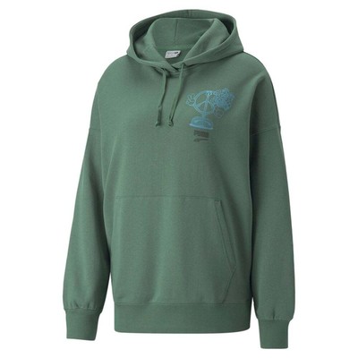 Puma Downtown Oversized Graphic Pullover Hoodie Womens Green Casual Outerwear 53, Зеленый
