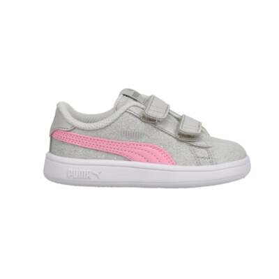 Puma Smash V2 Glitz Glam Slip On Toddler Girls Серые кроссовки Повседневная обувь 36738, Grey, Puma Smash V2 Glitz Glam Slip On Toddler