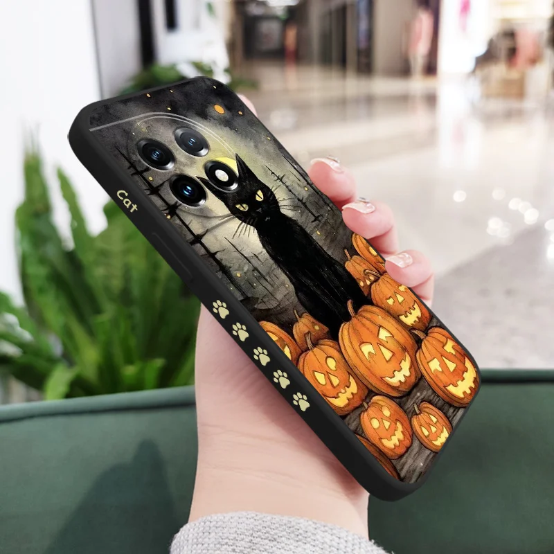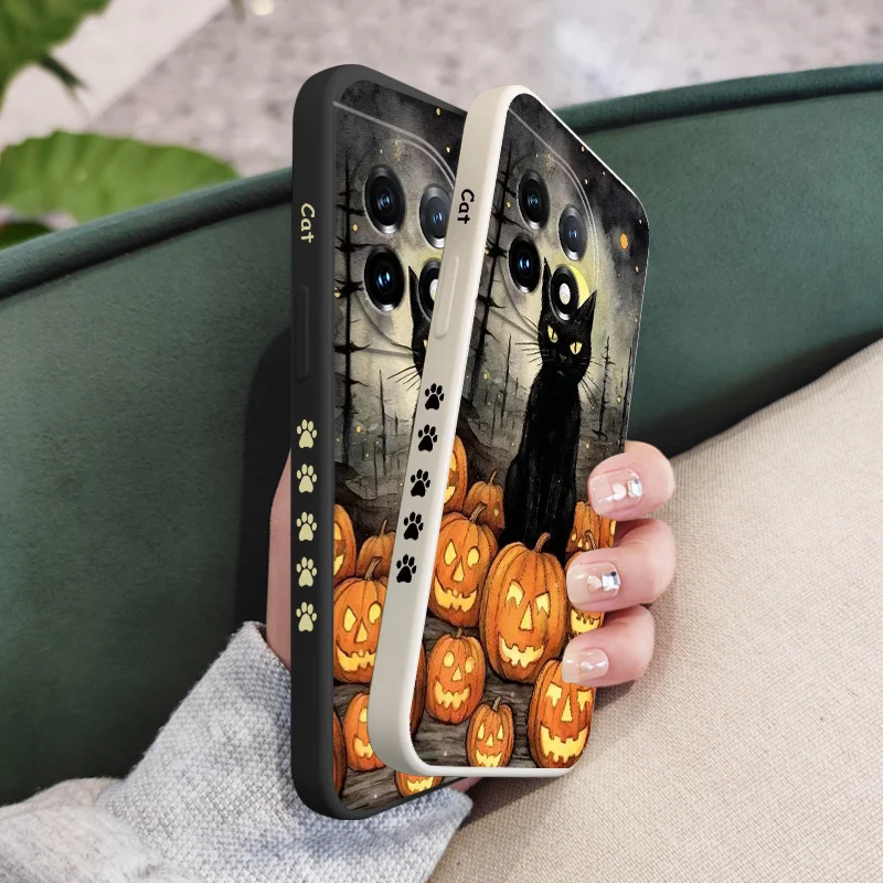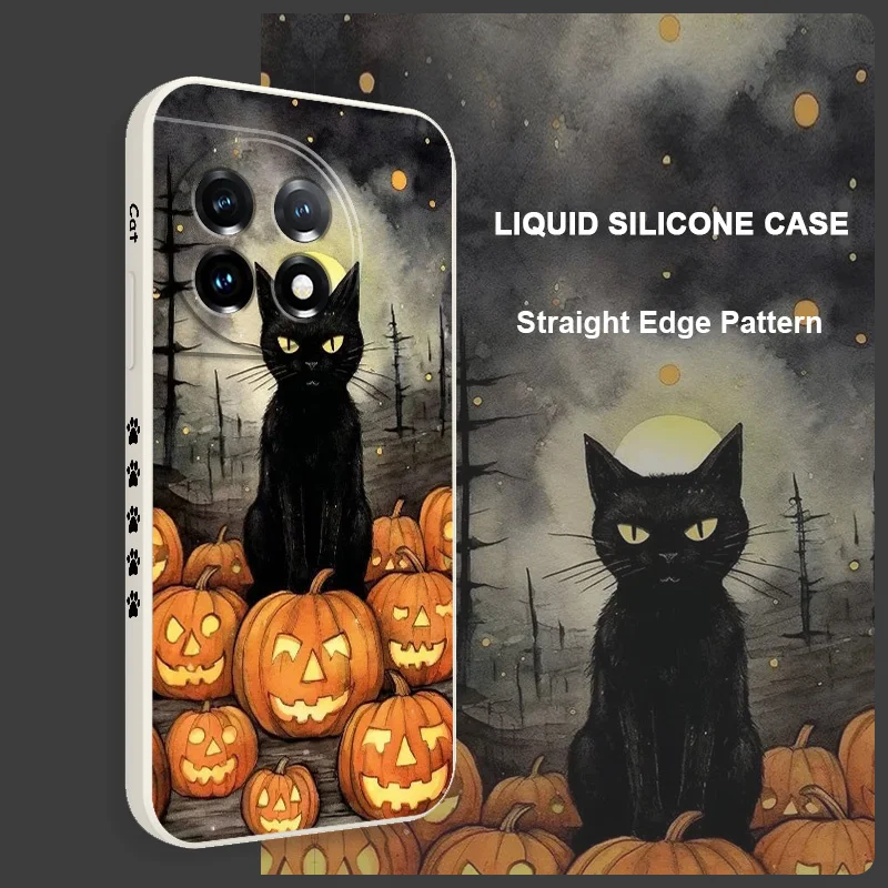 Pumpkin Cat Phone Case For Oneplus 12 12R 11 11R 10 10R 10T 9R 9RT 9 8T 8 7 7T Pro 5G Liquid Silicone Cover