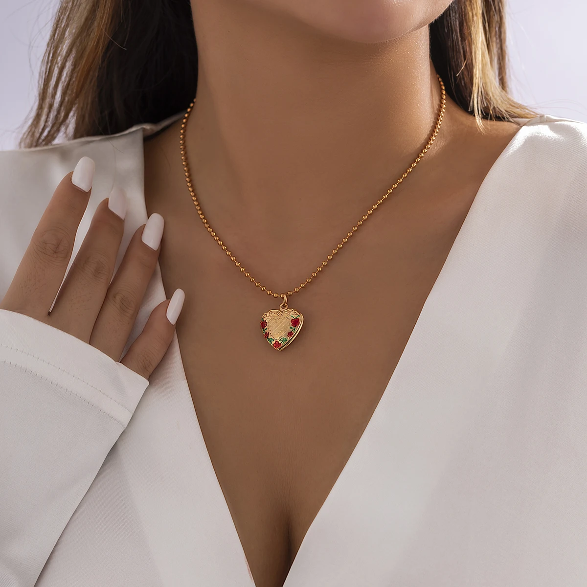 Punk Minimalism Round Beads Chain Necklace For Women Geometric Openable Heart Pendant Collar Retro Charm Accessories Jewelry