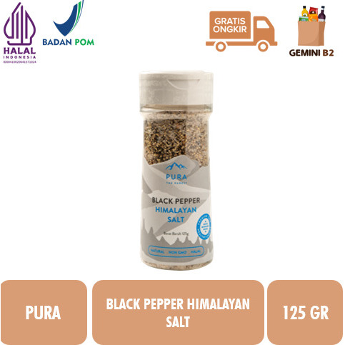 Pura Black Pepper Himayalan Salt, Perpaduan Lezat Untuk Citrarasa Terbuat dari Lada Hitam Pilihan dan Garam Himalaya Berkualitas yang Di Proses Secara Moderen dan Higenis.
