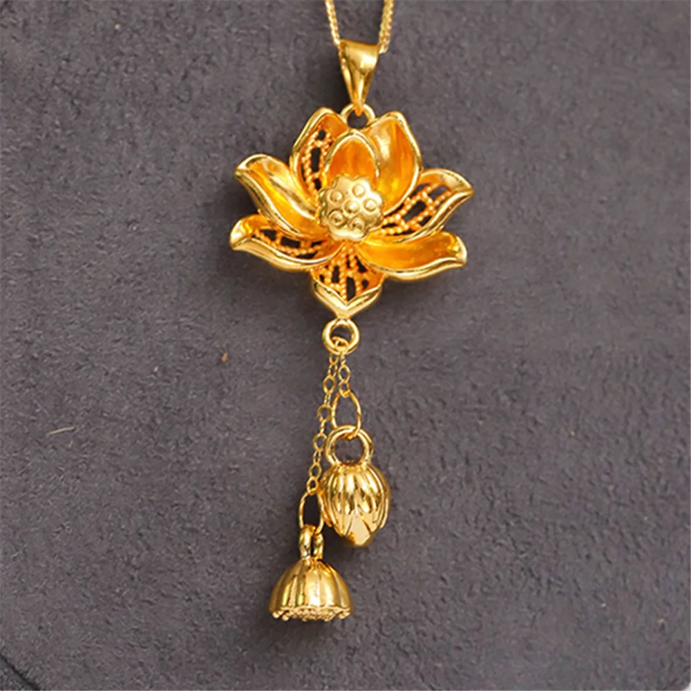 Pure 999 24K желтое золото, Женская 3D счастливая кисточка подвеска ввиде цветка лотоса 1,5-1,7g